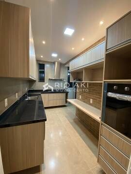 Apartamento de 141m², andar alto e fundos, composto por salão para 3 ambientes (estar, jantar e home cine/office), 3 quartos (1 quarto e 2 suítes, sendo uma delas com closet), cozinha planejada, área e banheiro de serviço.