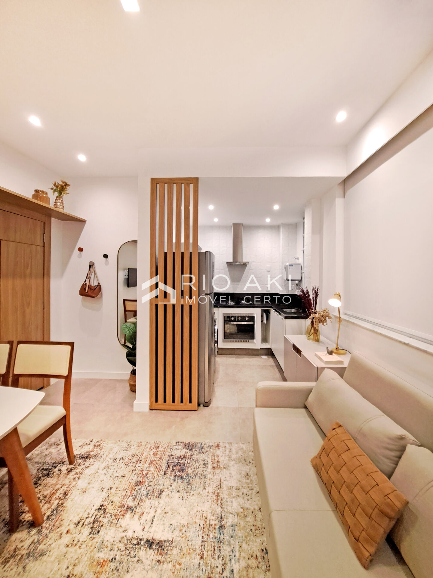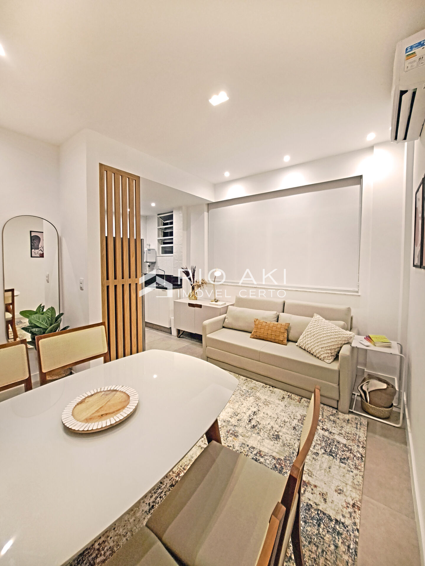 PORTEIRA FECHADA, 35m², Sala e 1 suíte, reformado e planejado por arquiteta, com armários, prateleira e painel de TV com assinatura Romanzza, piso porcelanato 60x60 em todos os ambientes. Sala com prateleira, painel de TV e split; cozinha americana com armários, forno embutido, cooktop 4 bocas, 1 suíte com armários, split e box com blindex.
